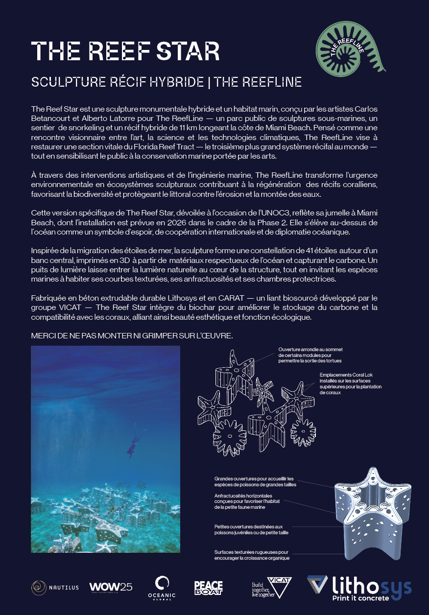 Infographic at the United Nations Ocean Conference (UNOC) event for The ReefLine in Nice, France.